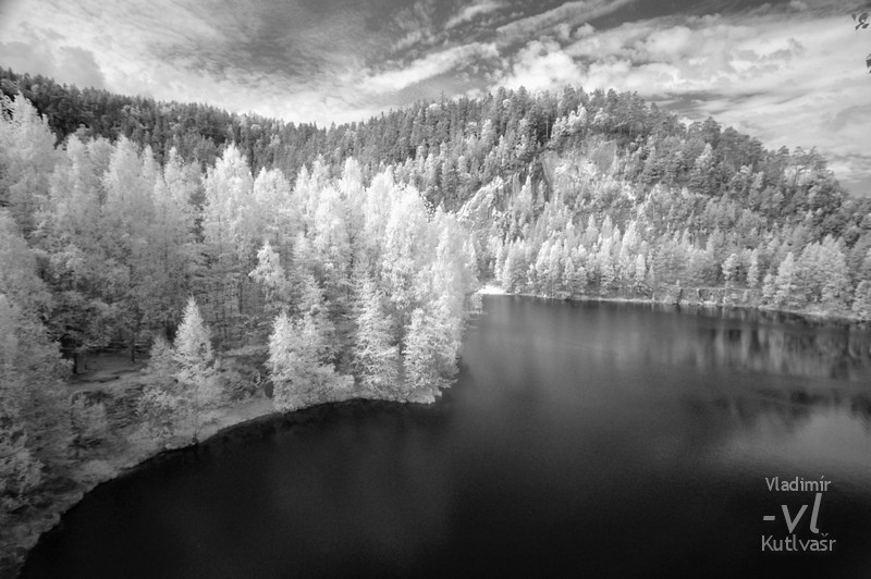 Fotografie v infračerveném světle je zajímavá tím, že fotoaparát zachytí obraz v oblasti pro oko neviditelného spektra. Barva tak jak ji vnímáme zde v podstatě neexistuje a fotografie pak vychází nejlépe v černobílém provedenení. Zelené listy stromů odráží více infračerveného světla, než například jehličky smrku. Voda naopak toto světlo téměř pohlcuje. Však mrkněte sami.