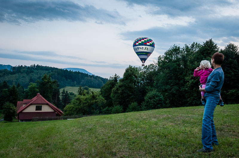 No, ono to tak horké nebylo. Jednoduše - blížil se rychle večer, začalo se stmívat a nad barákem se potichu objevil velký horkovzdušný balón. Asi došel vítr.