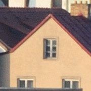 Aby bylo možné porovnat i jiné části fotografické scény, vybral jsem ze středu pole i bližší předměty, tentokráte stěny baráků ve vzdálenosti cca 500m.