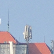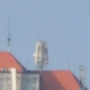Podívejme se tedy nejprve na střed snímku - střechy s anténami ve vzdálenosti cca 1000m. Může se tedy projevit vliv velké vrstvy vzduchu a nemůžeme počítat s velkým kontrastem. Nicméně, objektivy měla stejné podmínky - série snímků byly vyfoceny krátce po sobě.